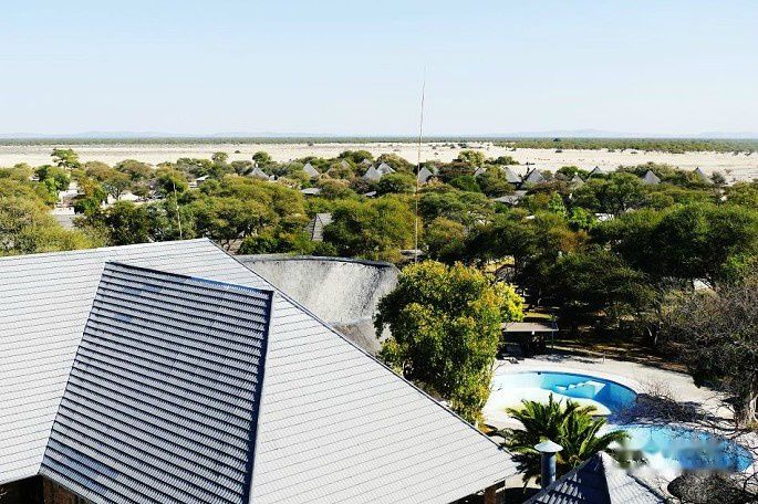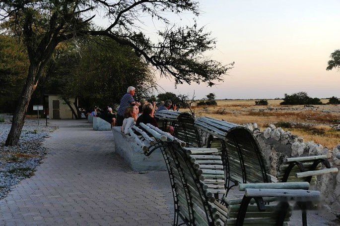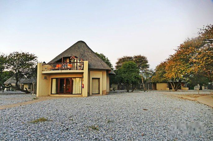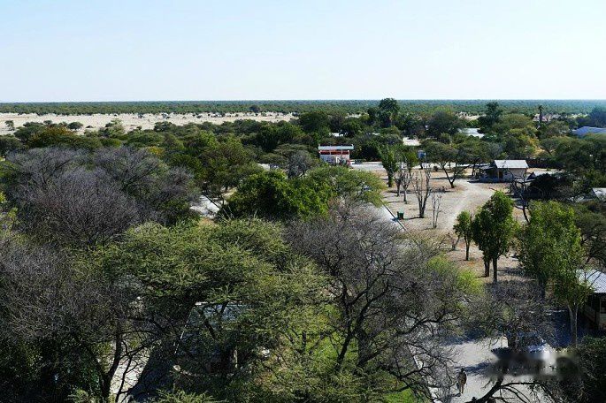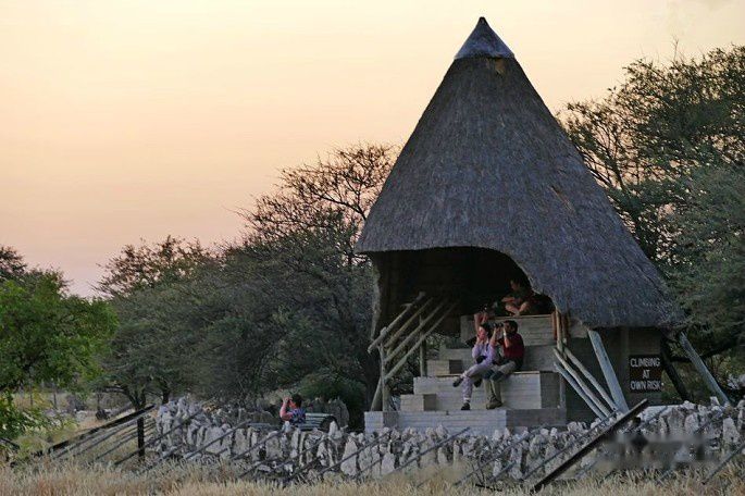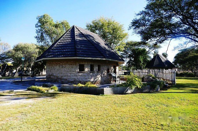 一号营地是游客居住的酒店,外面看像是我们在山东荣成见过的海草房,两层的房间是高档的,老外住在里面,在阳台上用望远镜就能观赏水塘边来喝水的动物。我们住的是普通客房(标间),里面设施齐备,为了防蚊房间有个大大的蚊帐,两张床和床头柜都在蚊帐中,我们去时已经进入冬季没有蚊子也没用蚊帐。
