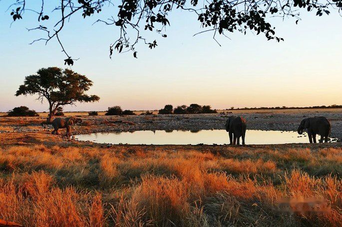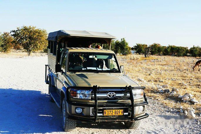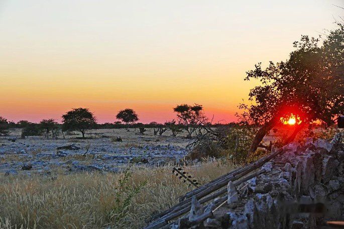 离开豹子庄园后直奔埃托沙国家公园。埃托沙国家公园是纳米比亚西北部的一个著名的国家公园,这个公园在1907年3月22日被西南非洲的德国统治者宣布成为游猎保护区。埃托沙国家公园占地22270平方公里,是纳米比亚最大的一个国家公园。进入野生动物园在地导的指点下我们看到了不少野生动物,大家兴奋的不得了。走走停停,但我们必须在6点半前进入公园的一号营地,否则一号营地关门我们就要与野生动物园共度夜晚了。