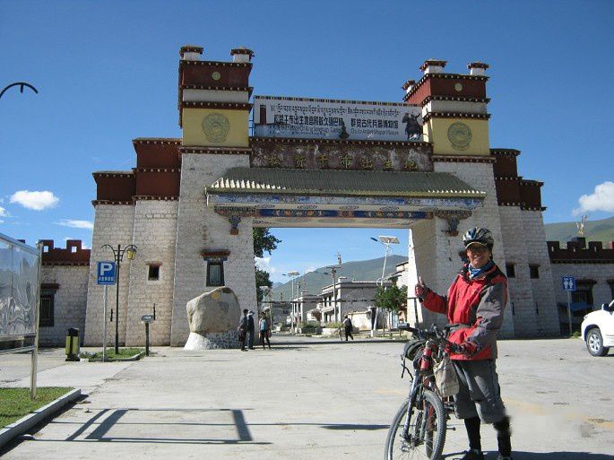 10点半到达隆达村甲玛景区,这里是松赞干布的故里,有一座大门楼可以拍照纪念,不过当时人很少,想是许多骑友不住墨竹工卡,都是一车到拉萨了。即使住墨竹工卡的,现在也早过去了。