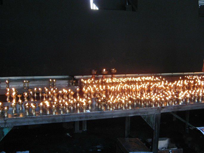 下午1点半到达孜县德庆镇,镇上有一座桑阿寺,紧靠路边,进去看看,规模很大,一派历史悠久的样子,但壁画、唐卡等彩绘似乎都是新的。有一间大房子很暗,里面点了数不清的酥油灯。