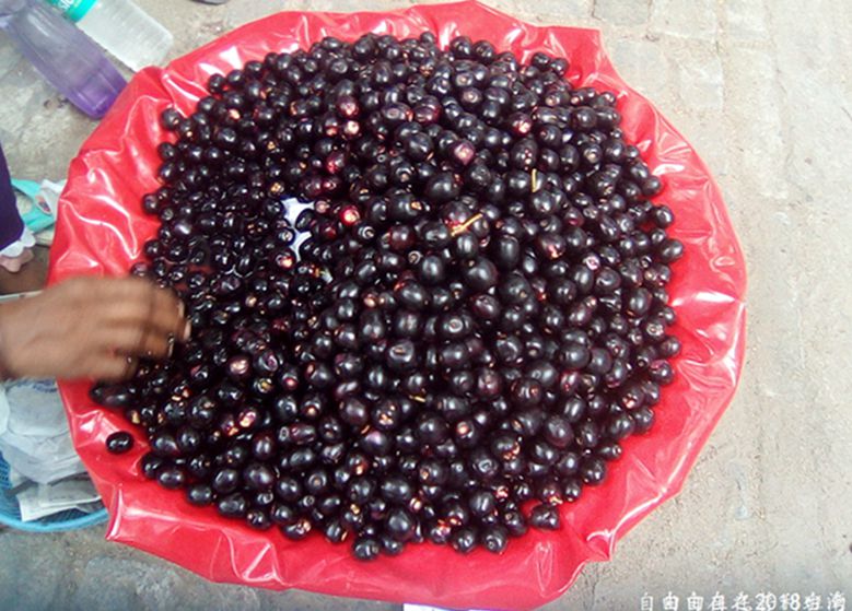 去年夏天在印度尼西亚,吃到了蛇皮果;今年在印度。吃到了黑莓,酸中带甜,很有口福,很开心。