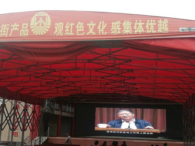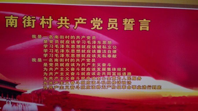 南街村以其特有的红色思想文化内涵吸引着人们的视线。临街墙壁上大红的 宣传标语随处可见。