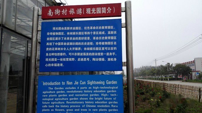 南街村景区形成了以文化园区、工业园区、高新农业园区、村民住宅游览区、文化教育游览区、广场文化展示区、珍奇植物园区和革命传统教育区八大观光内容的大型红色旅游景区.