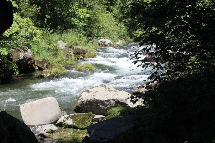走在望天鹅景区,河水始终相伴,河的名字这就是十五道沟沟口村子也叫十五道沟村,现在在离景区近一些的地方修建了望天鹅新村,主要是发展乡村旅游,基本都是农家院,建成农家乐,是游客来这里旅游的很好的休闲休息的场所。走在望天鹅的小路上,一路都是走在森林里,树荫下,伴流水潺潺,迎面凉风阵阵,好不惬意自在。