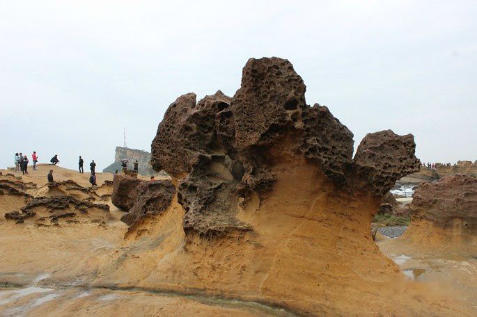 今天首先去的是野柳公园,它位于台北的东面,我们从新北市出发,一早赶往野柳。野柳是台湾人气最旺的景点之一,人很多,在女王头像那里拍张照要排长队,我们时间紧张,没有时间排队,也就罢了。这次再现出来跟团游的不自在,在景点的时间很短,要压缩时间才能去购物店。一共就给了30分钟去野柳,只能走马观花吧。我个人认为野柳值得慢慢看2个小时的。