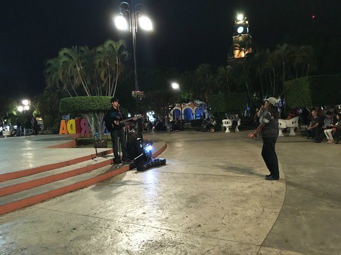 广场上最有代表性的建筑当属建于16世纪的双塔天主教堂,这是尤卡坦半岛上最大的教堂,虽夜幕笼罩,但遮不住教堂的伟岸。