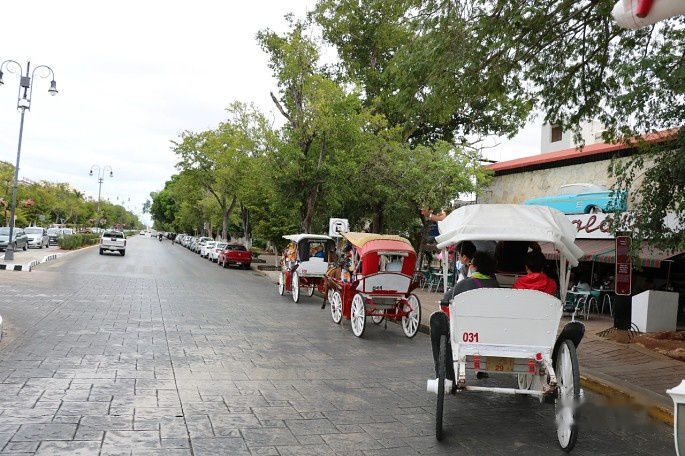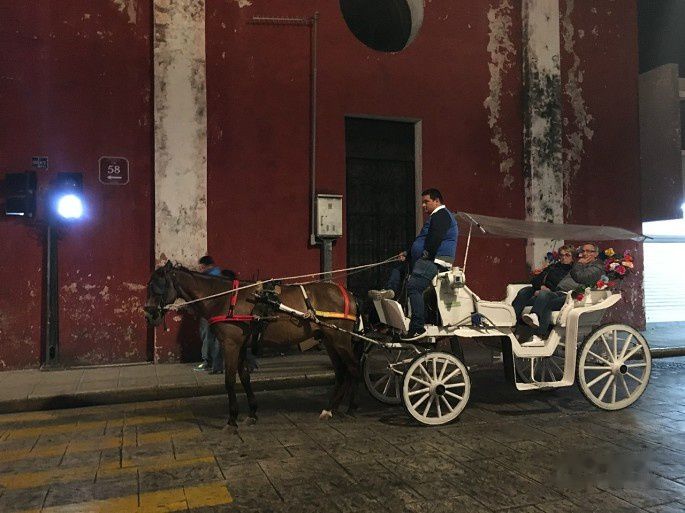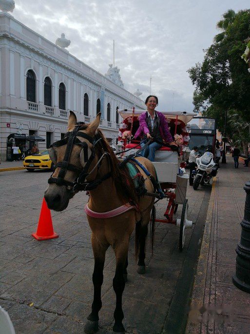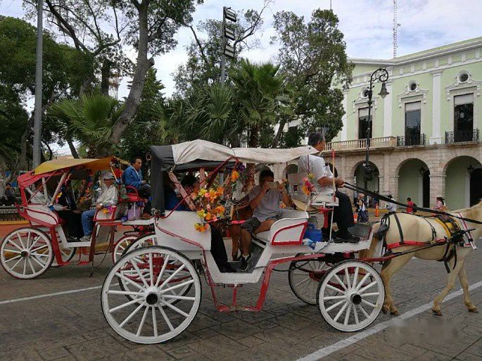 我爬上一辆花束装点的马车厢,开启了精彩的马车游梅里达城。踢踏、踢踏、踢踏,马蹄声回响在安静的老城里,马儿载着我们,悠哉穿行在大街小巷中。