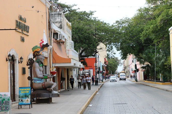 梅里达分为新城和老城,老城的街道比较狭窄,横平竖直,从马约尔广场向四面八方辐射出去。街道上大部分的房屋为别墅,窗口和阳台上装有铁花栏杆,门楣和窗楣上饰有花纹,房屋颜色不全是白色,每个弯角处都有精彩,每条街均能看到别具一格的房屋。