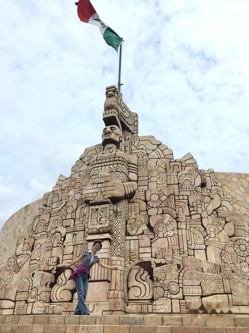 在孟迭候大道与58号街交汇处的环岛上有个巨大的纪念碑,石灰岩的文化墙非常壮阔,向人们展示着古老的玛雅文化,精湛的工艺雕刻出羽蛇的神圣与尊严。