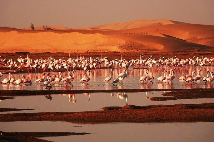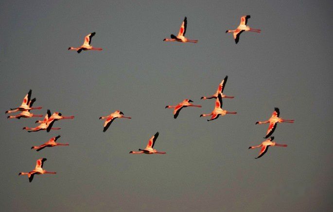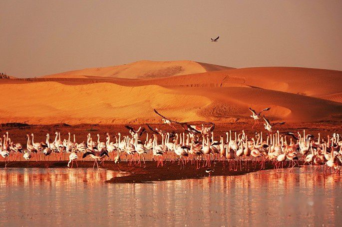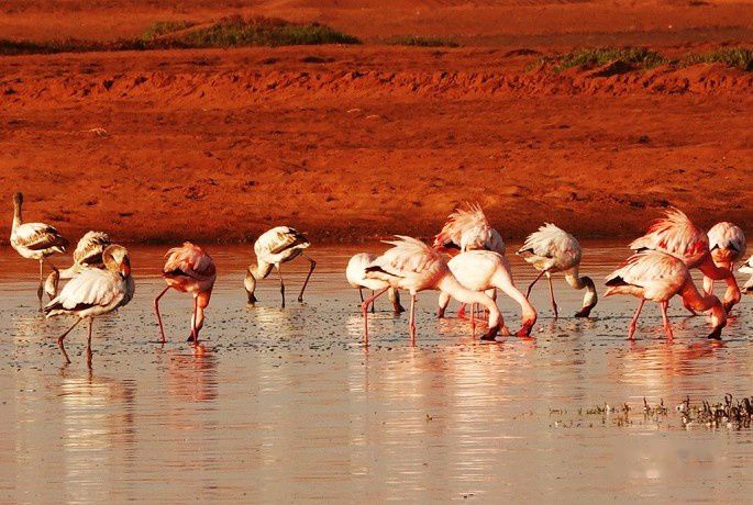 8:40出发,李导说带我们去补拍火烈鸟,因为这两天都没能很好拍到火烈鸟,大伙甚觉遗憾,李导答应补上缺憾。车行大约半个小时,来到了一片水域,远远看去非常漂亮,上面有大群的火烈鸟,简直美不胜收。为了不惊扰火烈鸟,我们都在岸边拍摄,直到大家觉得过瘾了,才继续前行。