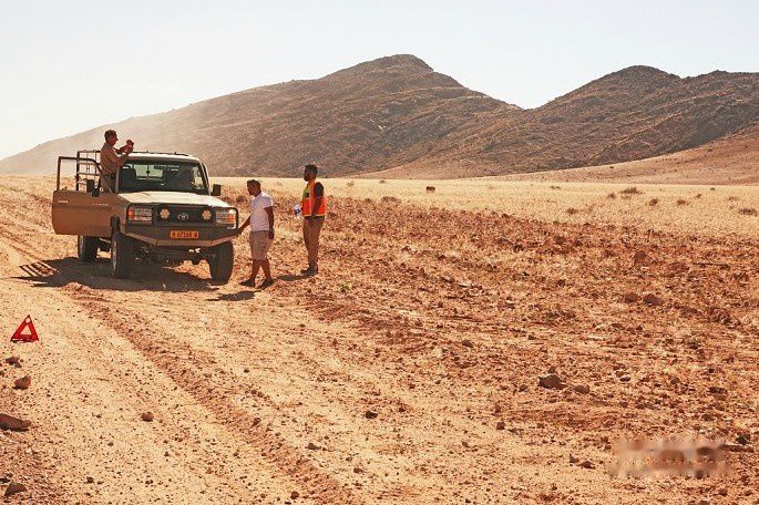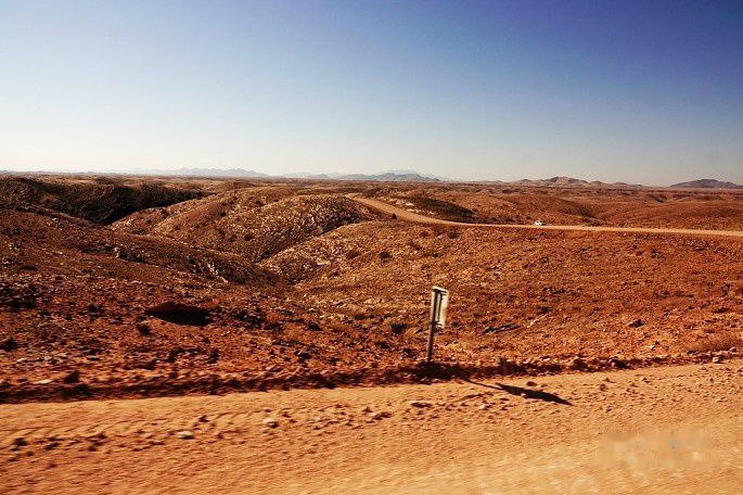 路上除了偶尔见到鸵鸟,一片荒芜,没有其他动物。