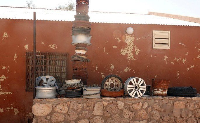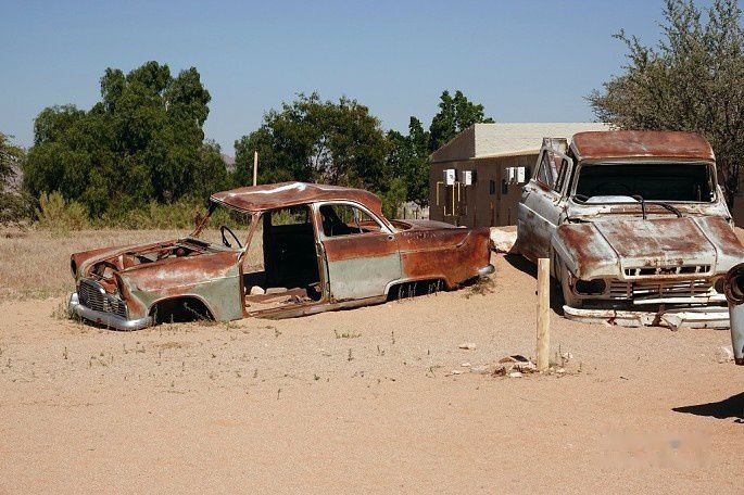 12:20到达孤独小镇加油并休息,我们就在周边拍照。这里的破旧车形成一个公园有点意思。