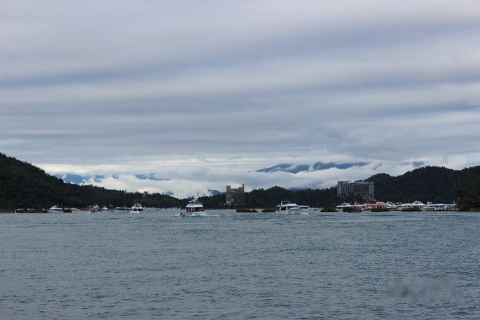 虽说不下雨了,但天上这一层厚厚的云层,是日月潭的湖水看起来发灰,如果好天气的时候看到绿油油的湖水应该比较好看。