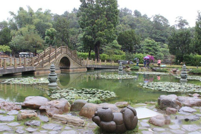 好在寺庙大楼的旁边还有一座小花园,显得古香古色一些,这时走过几位信徒,看来这里的香火还是很旺的。在台湾旅行,到处都可以看见FLG份子,在中台禅寺是唯一一座没有看见的,看来还是怕真神呀。