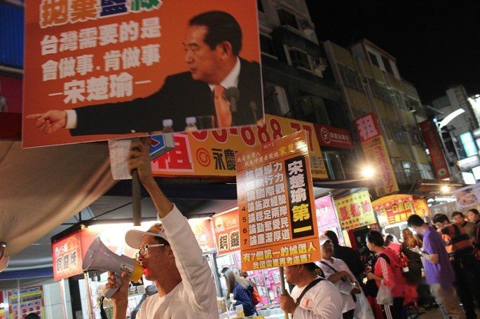 还看见宋楚瑜的支持者在扫街。