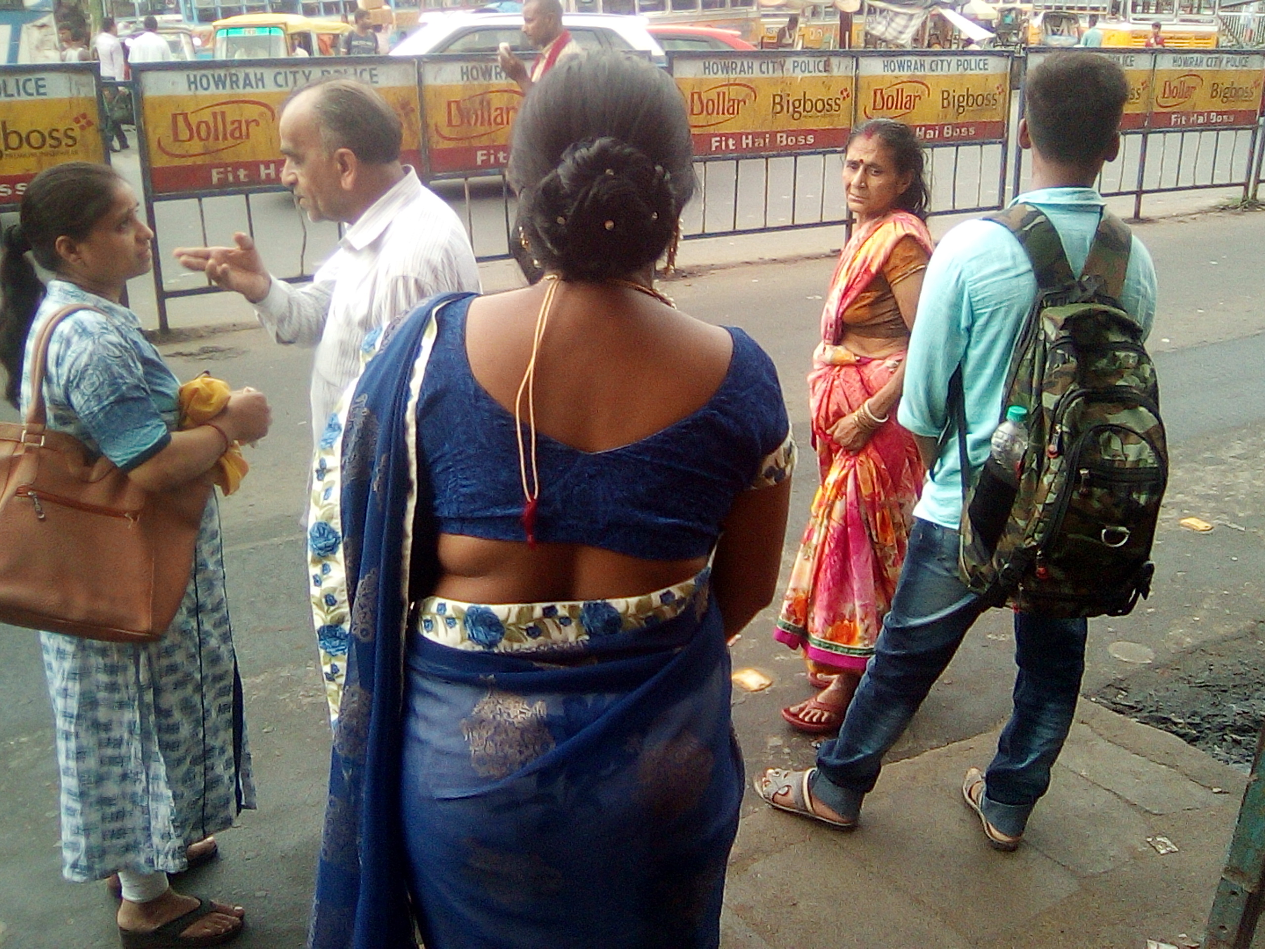 印度女性身着民族服饰沙丽在眼前飘然而过,身材窈窕,搭在左肩的纱巾飘飘,好美!再看有些印度大妈,大粗腰,沙丽穿在身上,赘肉一览无余,就有点滑稽了。