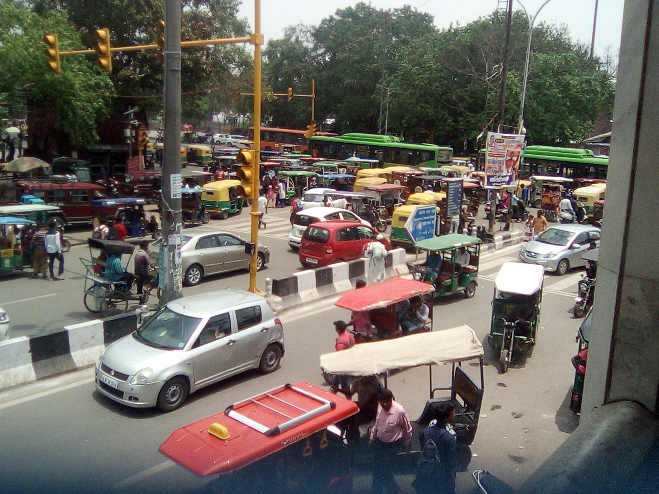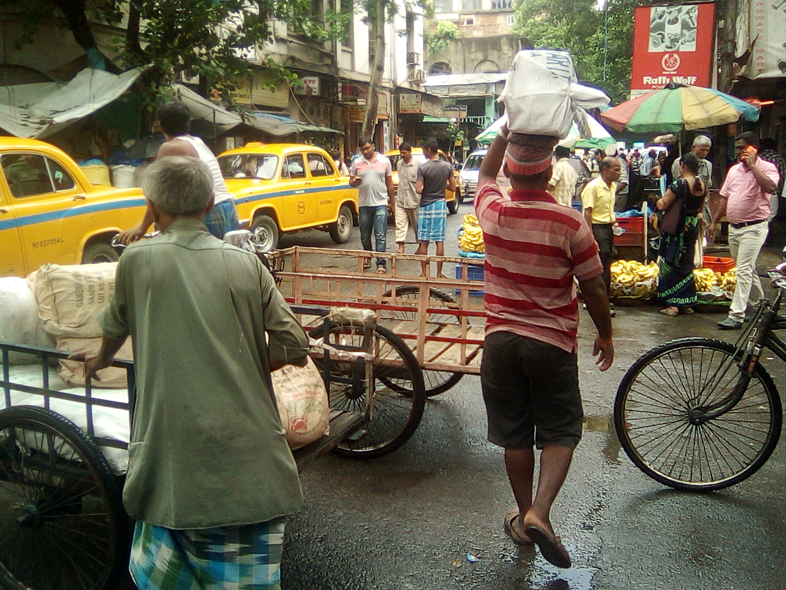 我决定先去豪拉车站买晚上去新德里的火车票,在路上,我看到了路边堆积的垃圾,还有苍蝇在飞,确实有点脏;因为各种车混在一起,也有点乱。