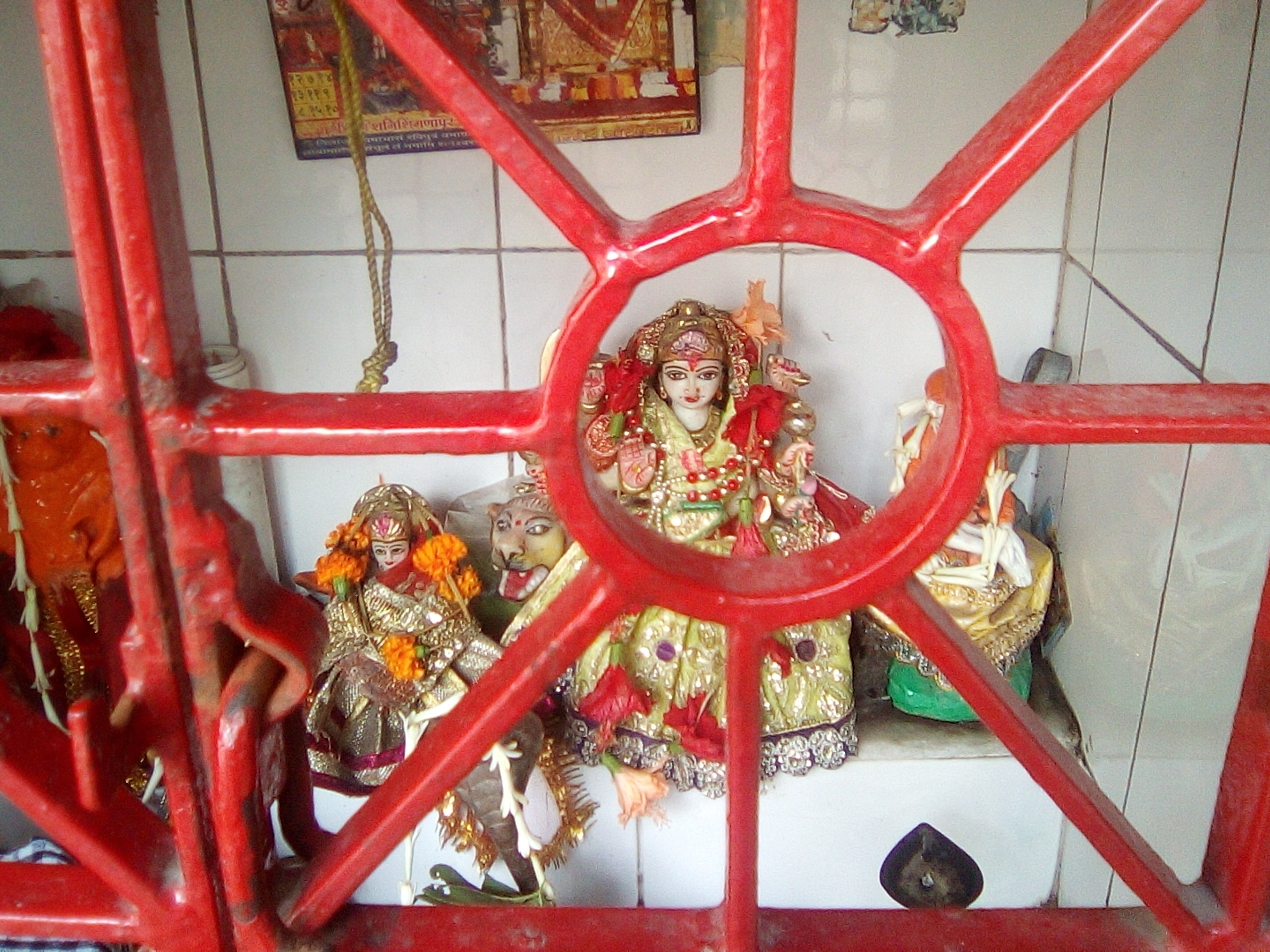 大家很清楚,中国农村的小庙几乎就是摆设,没有几个人真的敬佛,顶多有几个老头老太烧一炷香,但是,在这里我看到了虔诚。里面供奉的是印度教的神祗,走过这里的人都有所表示敬意。有的人是这样敬神的:用手轻点一下神龛台面,再点自己的额头,如此往来反复几次。有一个女神塑像,猜是湿婆大神的妻子,身后总跟着一只老虎,好像是她的坐骑?后来几天后才知道她是惩恶扬善的都鲁嘎女神(Goddess Durga)。我站在那里拍照片印度人并没有阻拦,没有施礼他们也没有生气,凭这一点就比某思想某宗教包容得多。