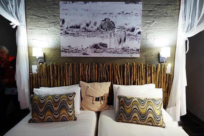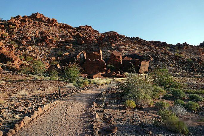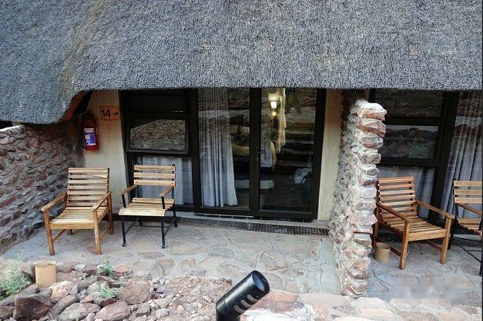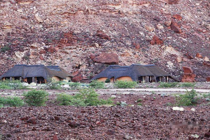 10:10离开辛巴部落,中午12点半在OPPI KUPPI午餐。下午2:10发车,一直到下午5点半到Twyfelfontein Contry Lodge酒店,这也是外面看是茅草屋,里面却很标准的标间,很舒适。
