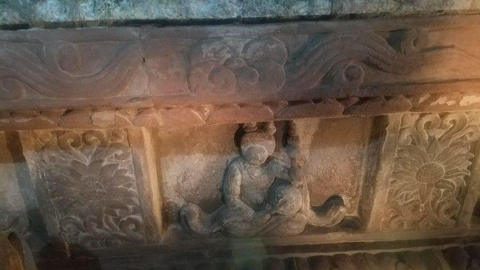 先去永陵博物馆,前蜀开国皇帝王建墓所在。从侧后门进园,就近先参观了展览馆,主要是墓出土的一些文物如哀册、石雕像等,以及有关前后蜀历史文化的文物、图文资料,算是来了个“有文化的开场”~~