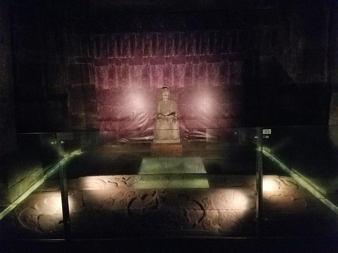 由展览馆绕回博物馆正门,买票“入墓”。墓保存较好,也是幸事。陵前石像生只剩一座为旧物。永陵是目前中国唯一一座地上皇陵,墓内石刻、出土玉器、银器精美,随葬品如“玉大带”、“谥宝”、“哀册”等,皆为稀世之宝。