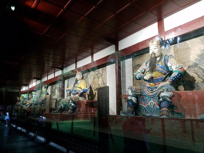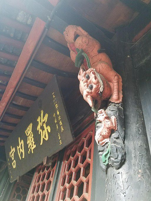三义庙为它处迁建而来,里面有后设的一些精致的石雕线刻画。此外,祠内各处置有很多宋代石刻,主要是武士、文官和神兽,也是特色。锦里紧邻祠,后来重建的,人自是很多,没有久留。