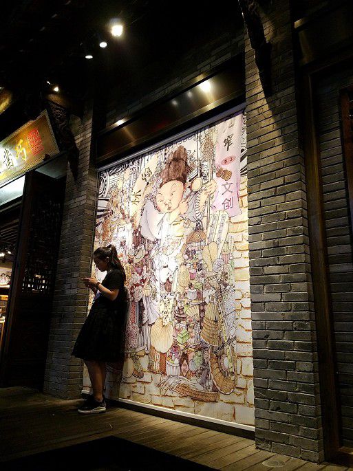 天色已晚,去宽窄巷子,大名鼎鼎的历史文化保护区,成都的一块标牌。新改造后的宽窄巷子延续了清代川西民居风格,但街道在形制上有北方胡同街巷特色,南北和融。