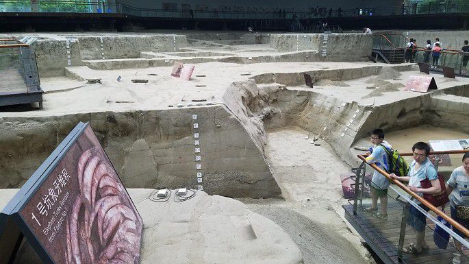 雨还在下,不算小,公交去金沙遗址博物馆。人还不少。里面挺大,一片乌木林,一个遗迹馆和一个陈列馆。遗迹馆是金沙遗址最重要的考古发掘现场,也是金沙遗址最早发现文物的地方。大多人是看个热闹和新奇吧。