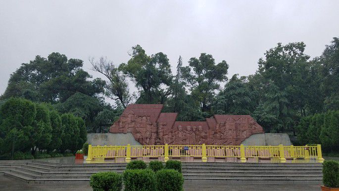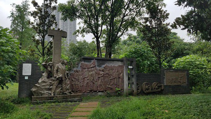 青羊宫隔壁是文化公园,十二桥遗址在里面,但已回填,可见十二桥烈士墓。一处山包四壁有古装人物群雕,估计与遗址有关。
