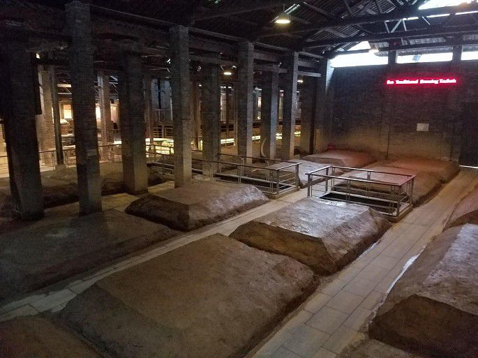 遗址保护比较好,是国内首处,充分展现了古今的承接流与融合。新老作坊、晾堂、酒窑、炉灶、灰坑及木柱、酿酒设备基座等,这些无不诉说着千年弥久的酒史民俗,酒香弥漫......