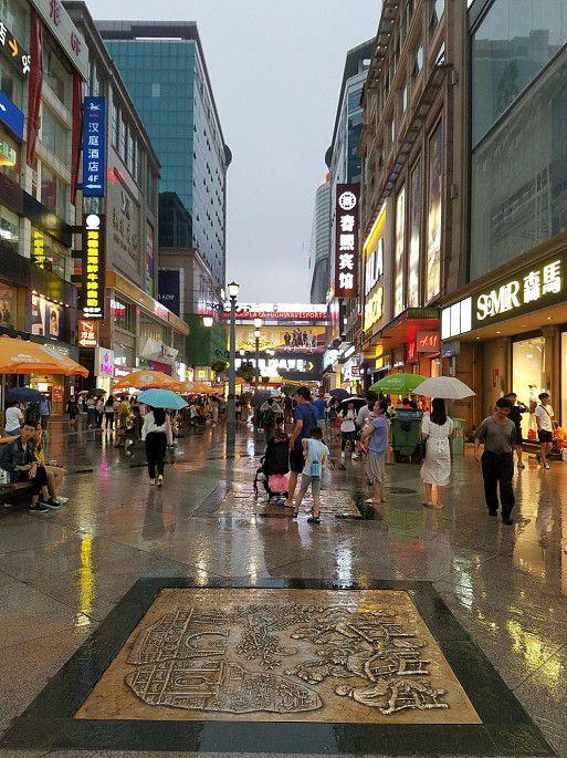 出博物馆,沿府河走,不多会儿到江南馆街街坊遗址,春熙路对过。遗址也已回填,掩没在现代丛林中。也好,顺便再走步行街,感受一番,这里与锦里、宽窄巷两重天地。