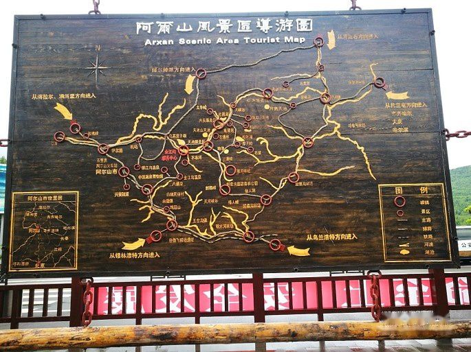 阿尔山国家森林公园内有大兴安岭第一峰--特尔美峰(海拔1711.8米)和大兴安岭第一湖达尔滨湖;