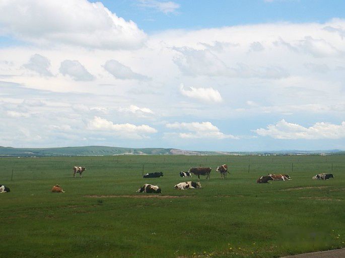 主要草种有碱草、针茅、冰草,牧草质量高,是牛羊最理想的放牧地。