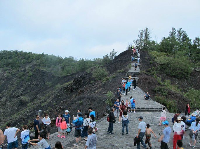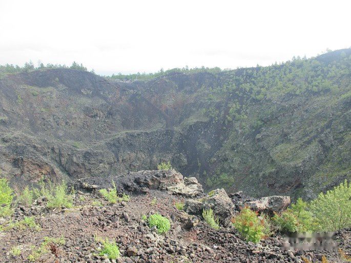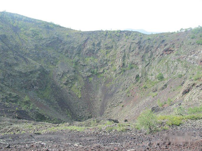 老黑山山顶有漏斗状火山口,直径约350米,深约140米,内壁陡峭,景象森然。