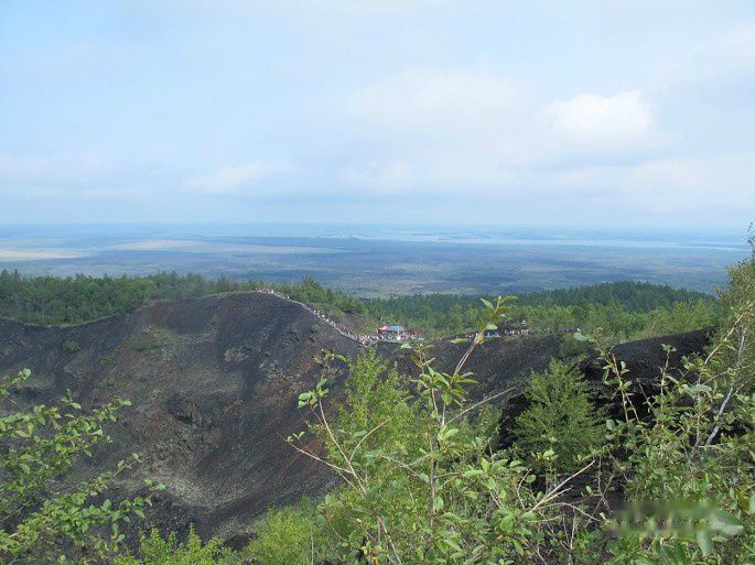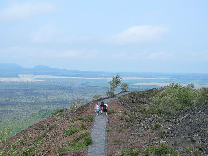 火山口周围有人行步道,俯视火山口底令人望而生畏。