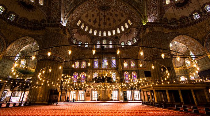 上次去土耳其第一站当然是伊斯坦布尔,蓝色清真寺确实让人眼前一亮,站在远远的地方就能看到它,6根高耸的宣礼塔直戳天际,随行的旅拍摄影师告诉我说6根宣礼塔象征伊斯兰教六大信仰,它也是世界上唯一一个有6根宣礼塔的清真寺。清真寺内部几乎全部用蓝白两色的瓷砖铺就,对我这种蓝色控简直就是福音,清真寺的透亮玻璃窗,使内部澄亮而有一种通透感。
