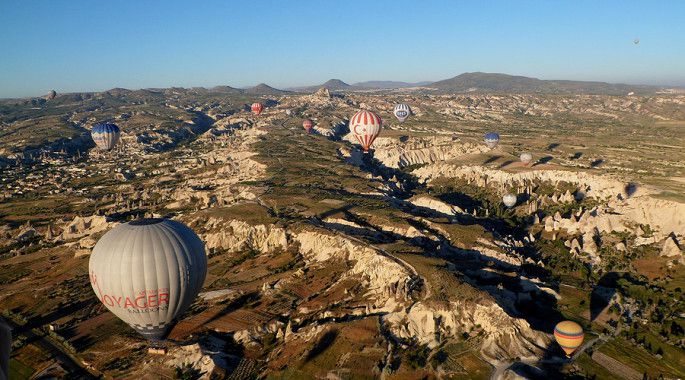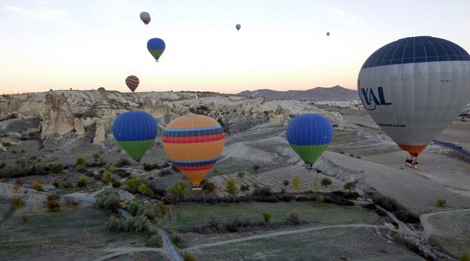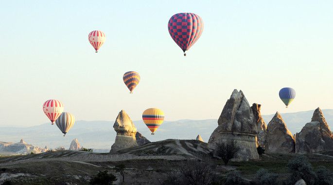 卡帕多奇亚是去土耳其必去的一个地方,映入眼帘的是漫天星星点点的热气球,这地方适合情侣,当然我们一行人也假装情侣体验了一下,热气球缓缓升空,眼看着地面一点点的离我们远去,心里还是有一丝惶恐,和坐飞机不同,这个是暴露于天空之下,越往上风渐渐变大,但是俯瞰整个卡帕多奇亚平原甚是壮观,可以以鸟儿的视角去看整个大地一生也没有几次。