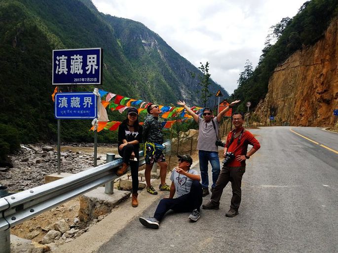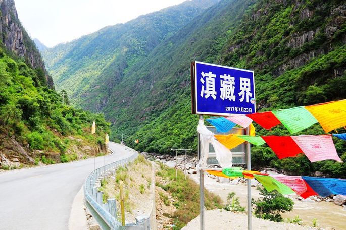 13:52我们告别了秋那桶村,14:00到那恰洛峡谷。14:10到麻马洛河大桥,14:30到了滇藏交界处(从这里以后,外国人是不允许进入的)。跨过界牌,我们就进入到西藏境内了,小伙伴们难掩激动和兴奋,纷纷在界牌处拍照留念。