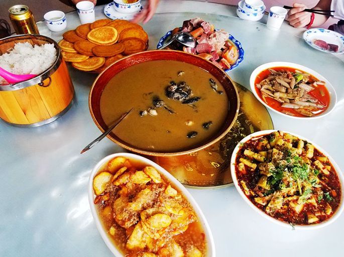 我们入住的平安大酒店位于县城外,距县城大概还有2、3公里,在酒店稍事收拾、休息后,17:00我们4人一起徒步去县城,找到一家火锅店,吃饭(火锅、烧烤),算是共庆此行穿越的成功吧。