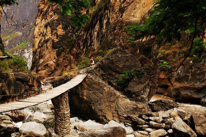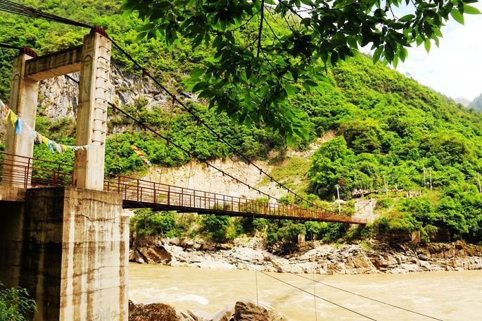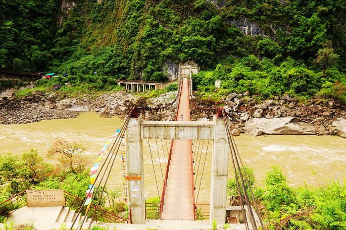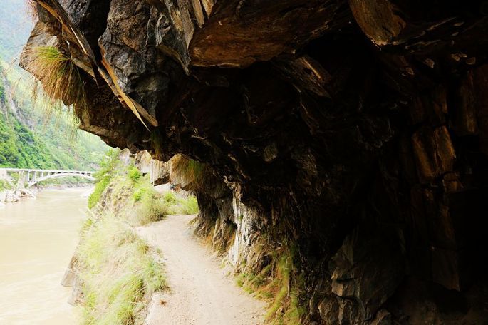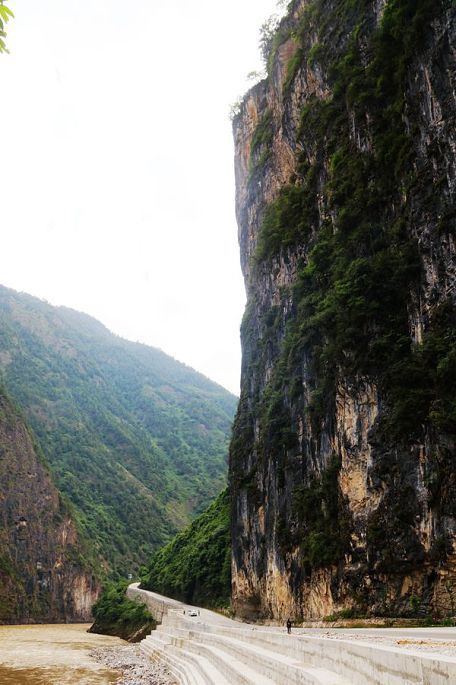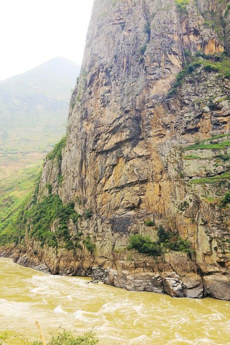从张老师小路下到谷底,过一段吊桥上到虎跳石,看江水滚滚,汹涌湍急,奔腾咆哮,气势非常壮观,震慑人心,然后,我与小龙一起爬天梯,走栈道,从另一端来到公路边上,再过神川大桥,徒步才回到张老师家停车场。