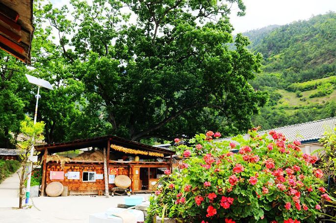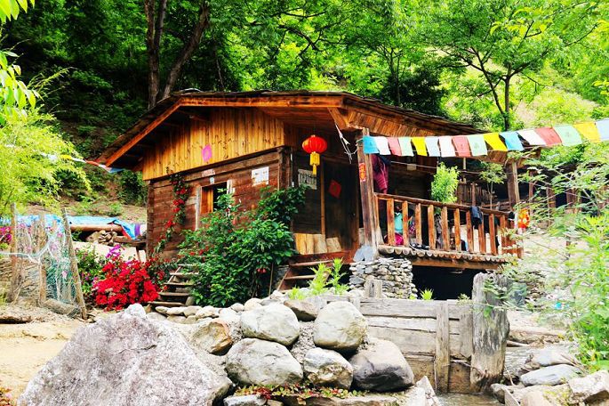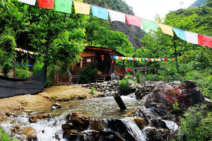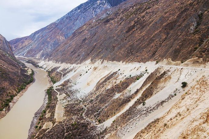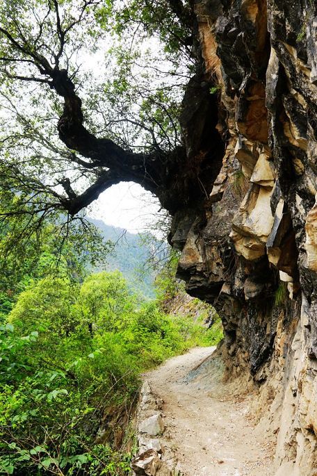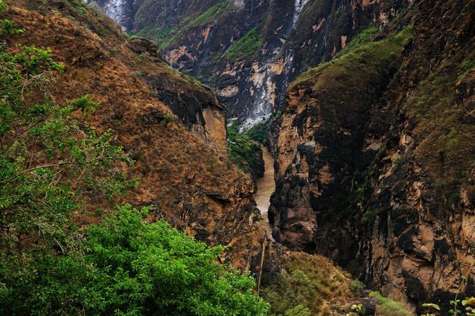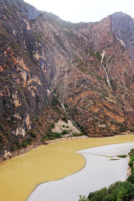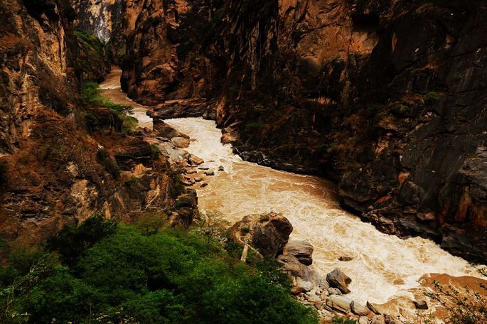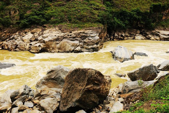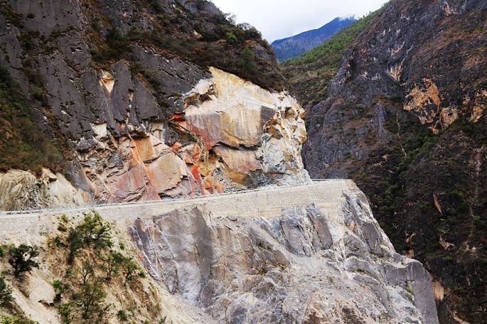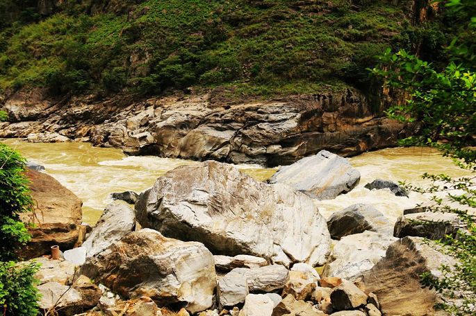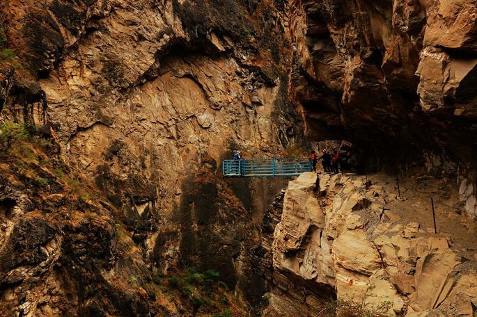 在景区门口路边的农家乐吃过午饭后,我们乘车离开白水台,13:30到达虎跳峡。虎跳峡分上、中、下虎跳峡,一般旅行社和游客去的是经过开发、打造的上虎跳峡景区,记得2006年春节那次来香格里拉,我们到的也是上虎跳峡,而今天我们来到的是中虎跳峡,没有开发,显得更原始一些,只有张老师个人修建的一条简易小路,通往谷底,人称“张老师小路”,因此他家在路口设卡要收15元的过路费。