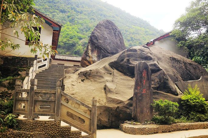 看寺院里大石碑上的介绍,飞来寺,是汉语的说法,在藏语里叫“觉吾南卡扎西”,意为飞来的佛祖像。传说建寺者南卡曲吉嘉措活佛,在卡瓦格博圣地闭关修行时,禅定之中见到了一尊佛像从印度飞来,降临到卡瓦格博对面的一座山头上,活佛观察缘起后,果真找到了一尊佛祖的真神像,并明白了佛祖的旨意,于是组织村民兴建寺庙。举行开光庆典时,佛祖又亲临寺庙上空,为寺庙和庙内主供的佛像祝福,为此,朝拜觉吾南卡扎西就等同于朝拜拉萨大昭寺的佛祖像,寺庙由此名声大振,享誉藏地。