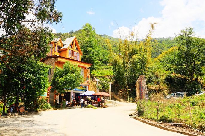 在飞来石处因临时交通管制,休息了大概半个小时后,继续前行,约14:00都到福贡县的老姆登村口了,又遇交通管制,无奈只得就地休息等待。15:20待管制结束后,我们一行才进村中,入住老姆登酒店。