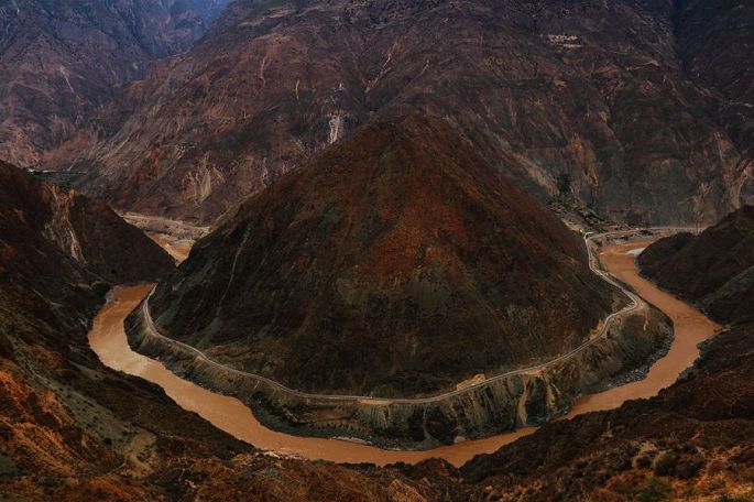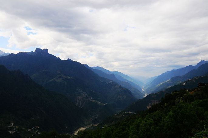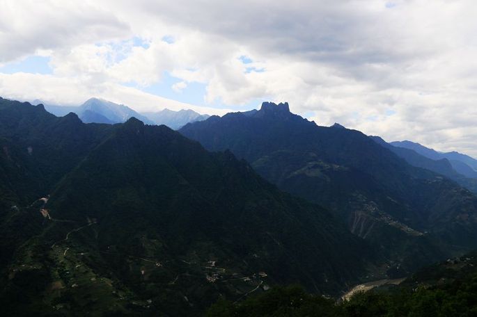 跨越澜沧江,进入怒江大峡谷地区,一条大江自北向南缓缓流淌,两岸高山连绵不绝,左侧的是高黎贡山,翻过高黎贡山就到缅甸了,右侧的则是怒山,之后好几天时间,我们便都是在这两山相夹的怒江边,沿江逆流而上的。