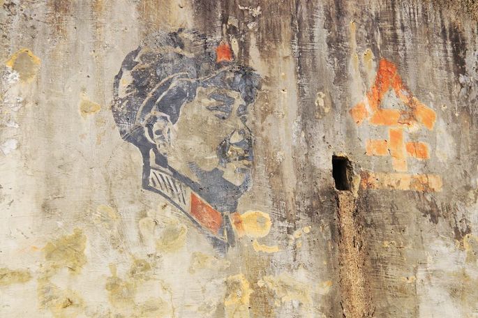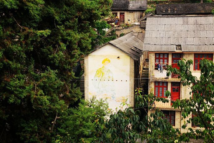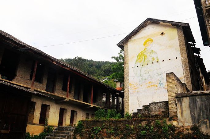 正因为这段历史,所以现在这里被人们称作“废城”或者“记忆之城”,徜徉这座废城,发现那时的许多建筑都还在,尽管早已人去楼空,荒芜沉寂,且大多已残破陈旧了,有些连门窗已不全了,而斑驳墙面上依然清晰的毛主席画像和大字标语则依然清晰可辨,成为那个年代鲜明的印记。建筑是凝固的历史,这些破旧的建筑见证了昔日知子罗的繁华热闹,如今则默默地向来此地的人们诉说着那过往的一切……