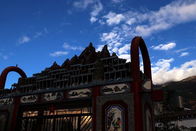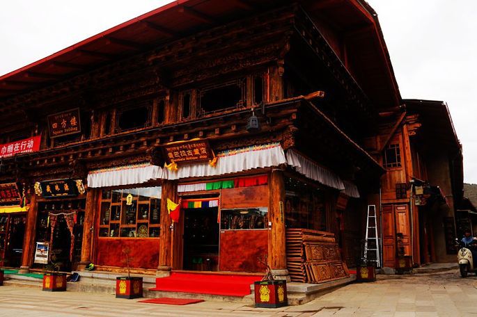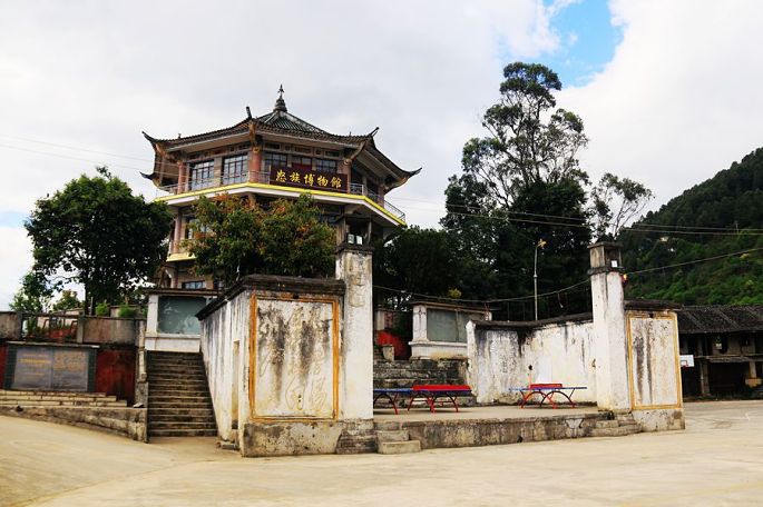 下山之后,我们去参观了迪庆红军长征纪念馆,纪念馆后面的建筑原为中甸中心镇公堂,始建于清雍正二年(1724年),该公堂为当地藏民祭祖诵经、集会议事、办理婚丧之事的场所,大殿为三重檐歇山顶殿堂建筑,外观是汉式楼阁,内部则是藏式格局,堪称一座汉藏建筑艺术风格完美结合的代表性建筑。1936年,贺龙、萧克、任弼时等率领的红军长征经过中甸,曾设指挥部于此,并且在这里召开过著名的“中甸会议”。