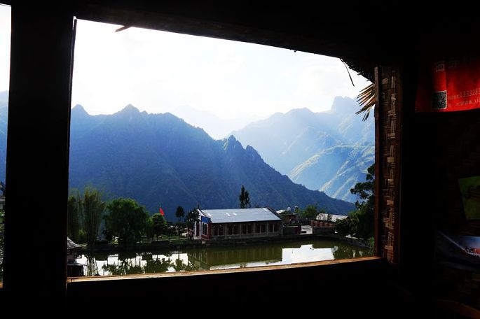 离开红拉山垭口,之后便是一路下坡,19:00到“W型大峡谷”石碑处,这里已属三江并流的澜沧江流域,峡谷因形似“W”而得名,同样的陡峭深切,落差都在2、3000米不等,最深处甚至可达4000余米。19:25过曲孜卡,19:41到达西藏芒康县的盐井乡,入住佳加酒店,令人欣喜的是窗户外面就是像画一样的一片乡村风光,太迷人了。