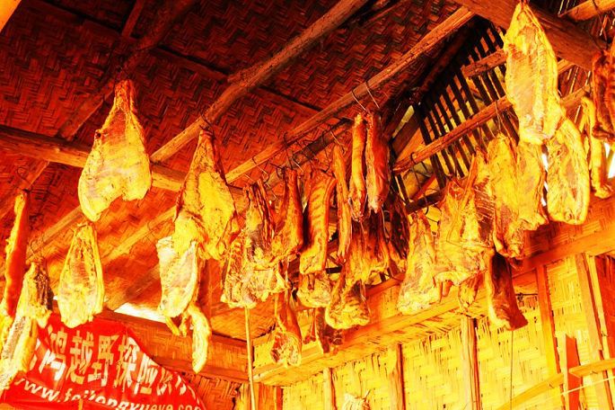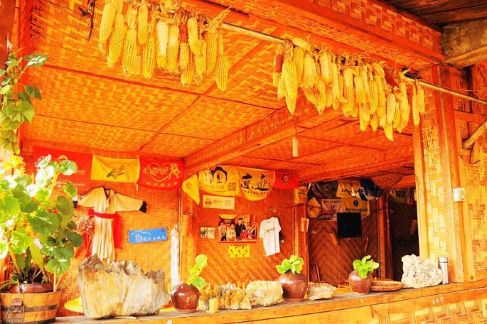 17:30小黑带我们到一五零客栈(怒苏哩农家乐)的竹楼上吃饭,品山中野味,尤其其中的一道竹叶草汤(据说这种竹叶草,只有在海拔3000米以上的地方才有生长),十分清香,让人回味不已。