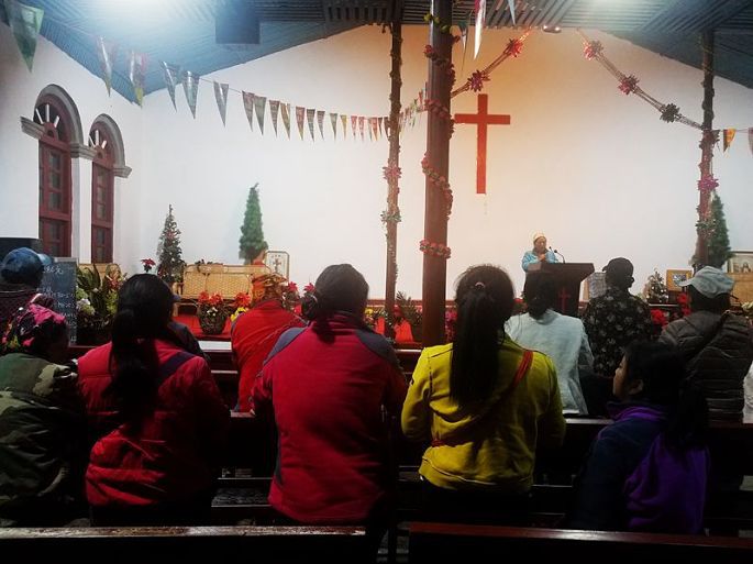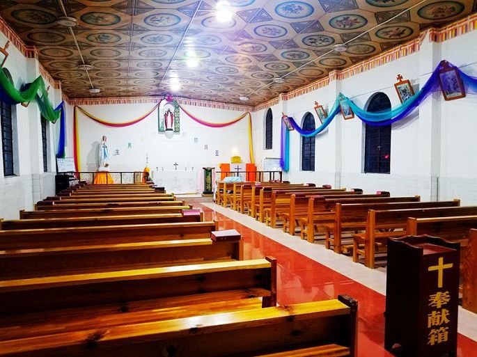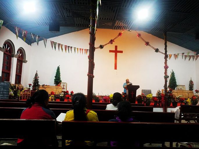 晚上8:40再去基督教堂,果然教堂大门已开,里面灯火通明,我进去后找一靠后的长条凳坐下,只见村民三三两两,陆续到来,上前落座,手捧经书,不一会儿便响起了唱诗班悠扬的歌声。尽管听不懂他们用当地民族语言的念叨和歌唱,然而身处其境,还是被一种庄严、肃穆、神圣、纯净的氛围所感染,心灵会受到某种震撼的。