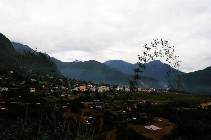 过三界怒江大桥,经过边防检查站后,17:00到达今天目的地——怒江傈僳族自治州首府所在地、美丽的江城泸水市(所在地为六库镇),入住城外的香格拉大酒店。